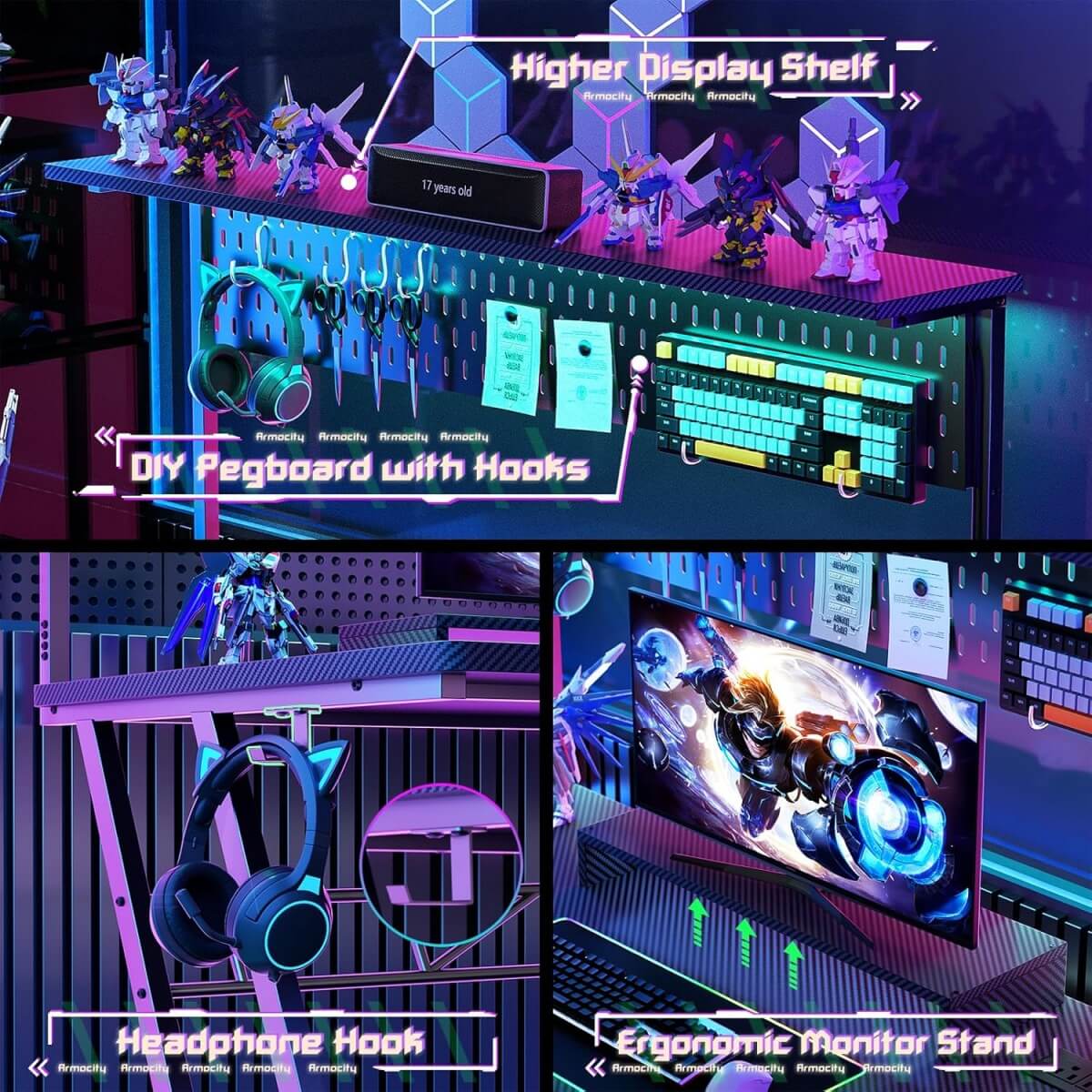Armocity Gaming Desk with Hutch & Storage Shelves – Ultimate Gamer Setup