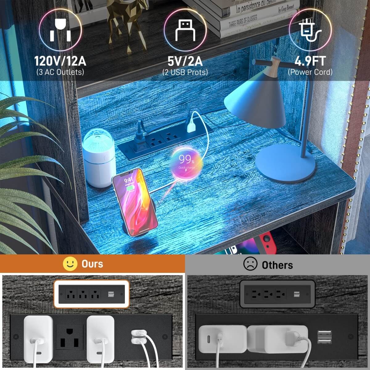 Multi-Device Charging Station: Armocity nightstand features 3 power outlets & 2 USB ports to charge 5 devices simultaneously. A 4.9 ft cord ensures flexible placement.