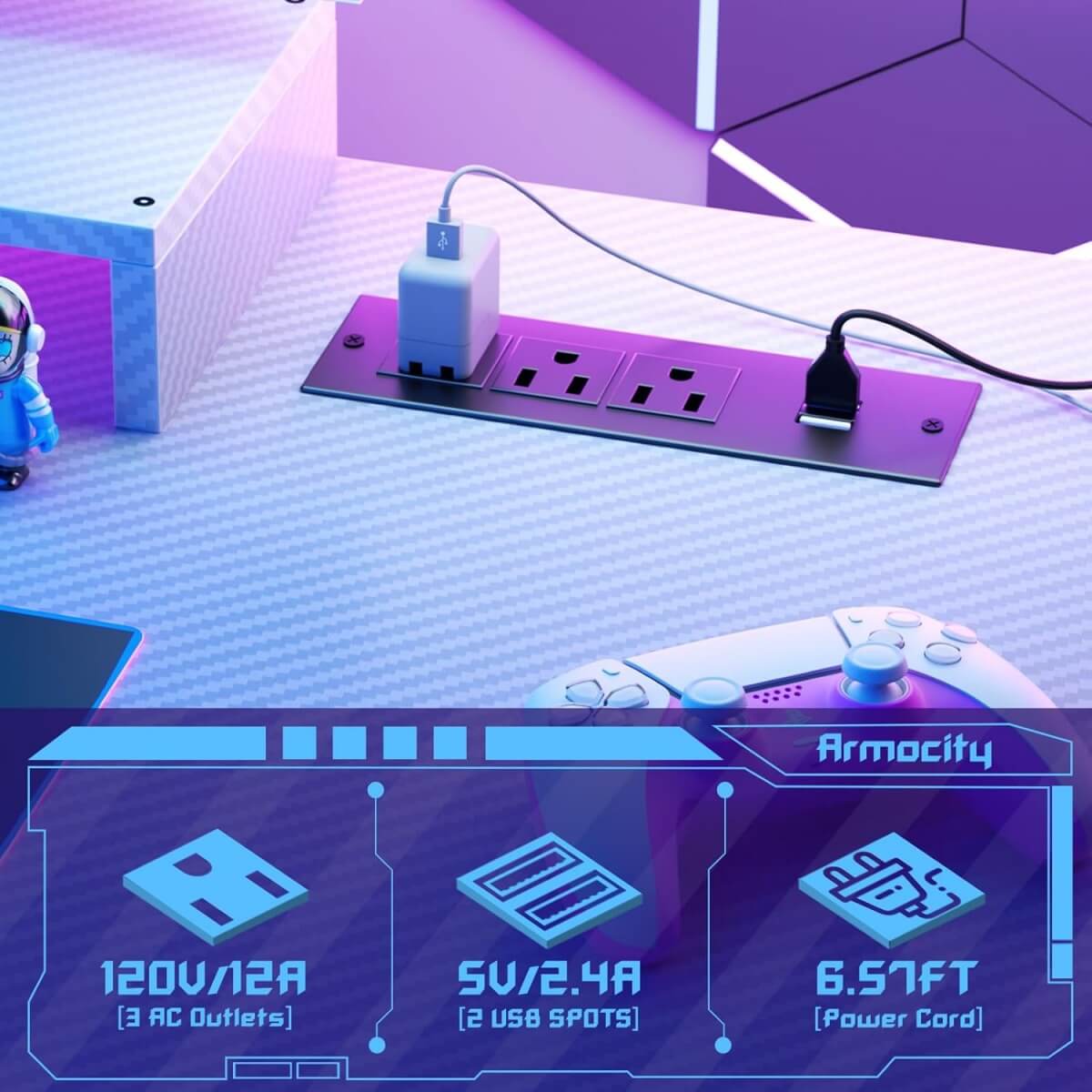 Built-in Outlets & Smart LED: Charging tower for easy device power-up. RGB LED lights with 20 dynamic modes to enhance your gaming atmosphere.